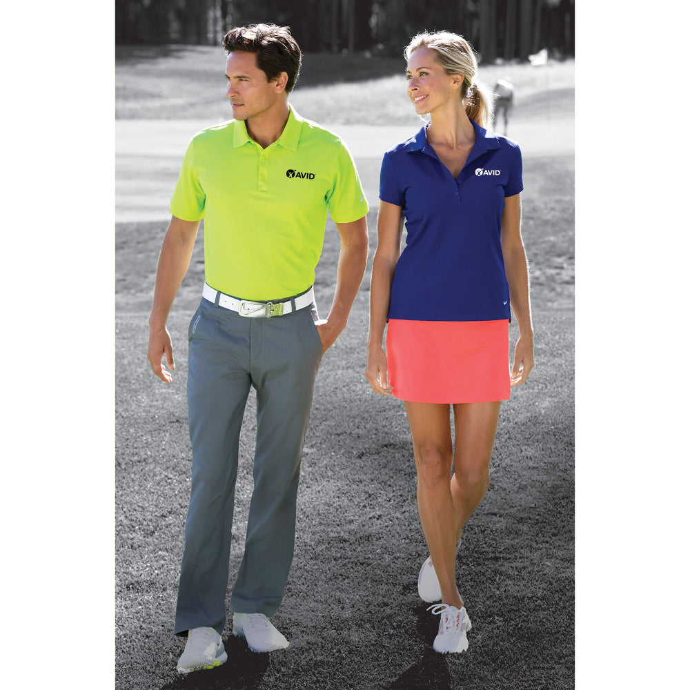 Dri-FIT moisture management technology achieves maximum comfort, while an iconic look gives this pique polo modern style. Design details include a self-fabric collar, dyed-to-match buttons and open hem sleeves. Three-button placket. The contrast Swoosh design trademark is embroidered on the left sleeve. Made of 4.7-ounce, 100% polyester pique Dri-FIT fabric. Modern fit is slightly tailored through the chest, arms and waist.