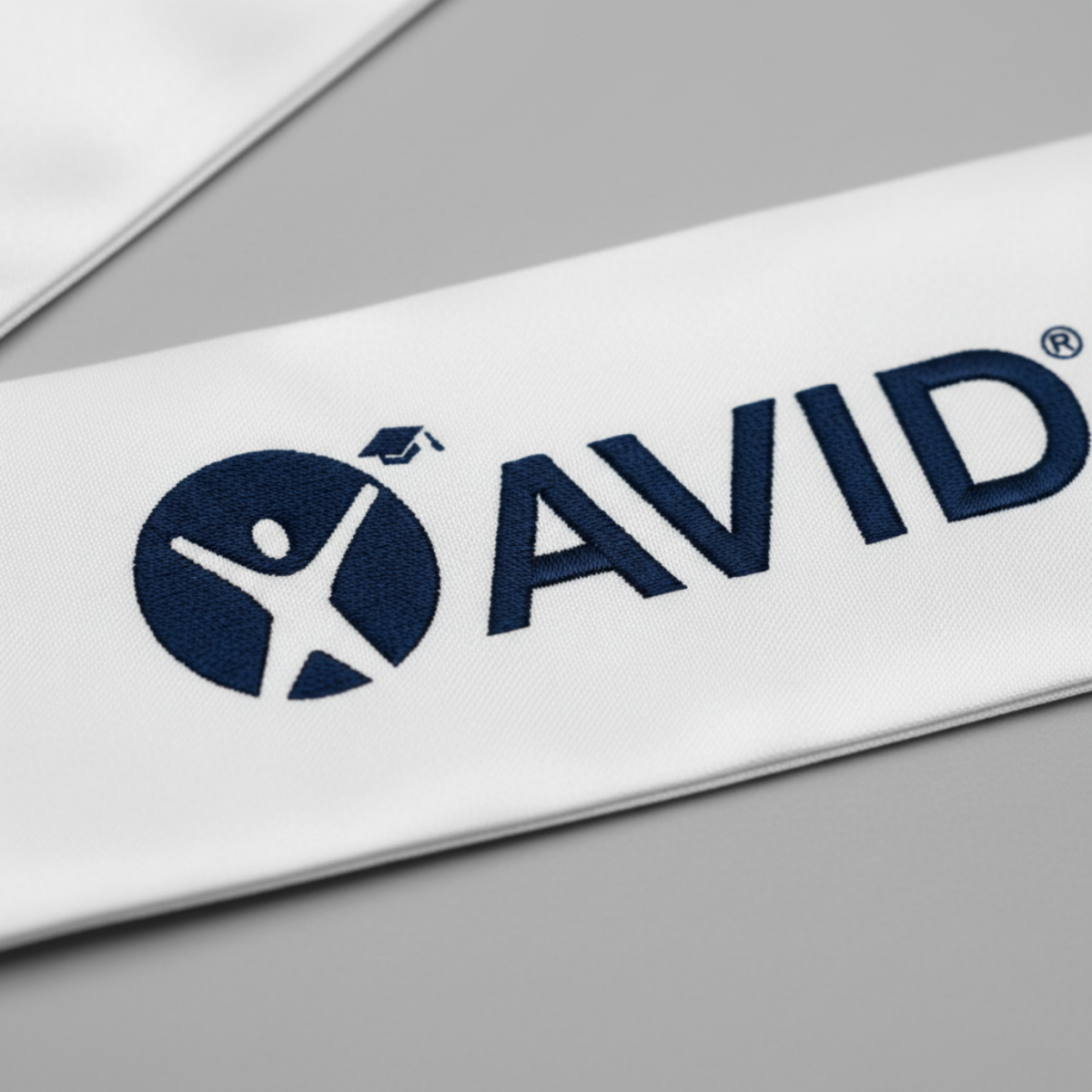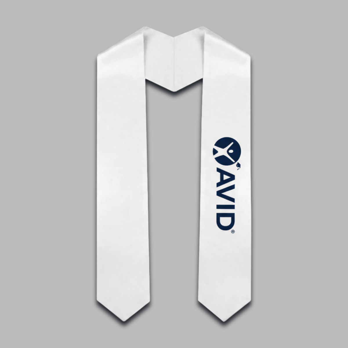 The perfect graduation accessory for any AVID student. Celebrate your graduation in style with this silky white sash. Now with beautiful dark navy embroidery!