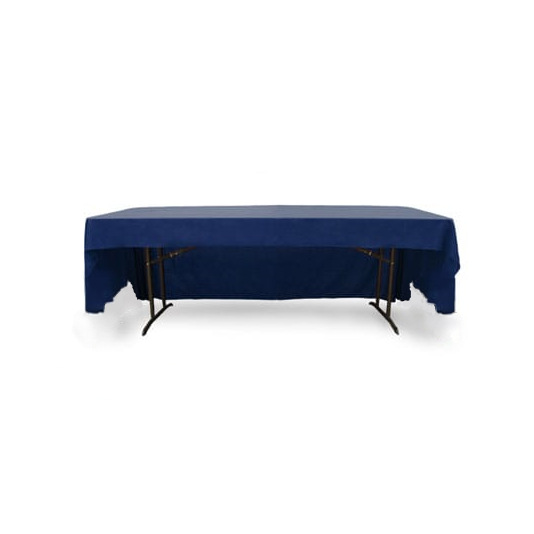 This 6 ft. draped table cover is made of durable 7 oz. poly / cotton twill with 100 x 56 thread count and 3-5% shrinkage. The fabric is flame retardant and complies with MVS 302 standards. Measures 108" L x 60" W in dimension. Do not dry clean this product. Wash cold in a gentle cycle and tumble dry low. Do not iron printed areas. Made in the USA.