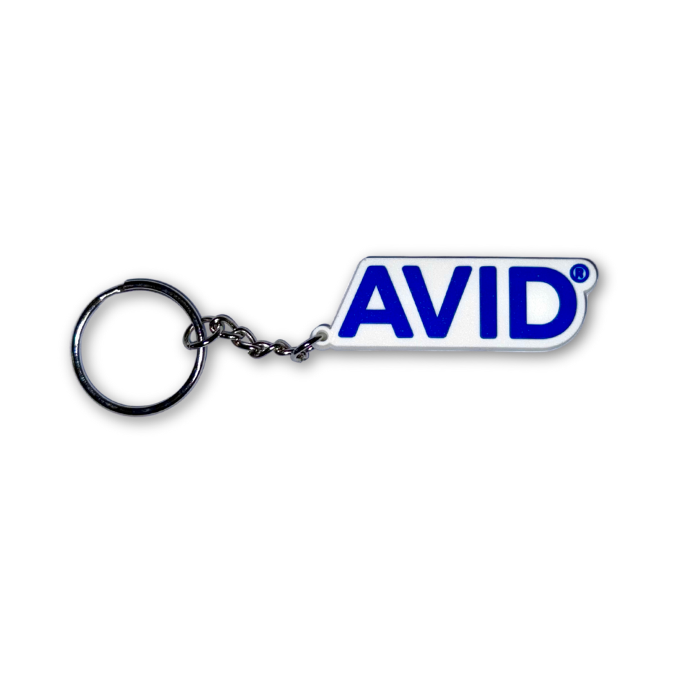The AVID PVC Keychain is a 2" wide flexible pvc plastic keychain designed in the shape of the AVID logo. Perfect for any AVID enthusiast or graduate, this keychain is a practical and stylish way to show off your AVID pride. Includes a metal split ring to attach to your keys, backpack, and more. Its durable material ensures long-lasting use for years to come.