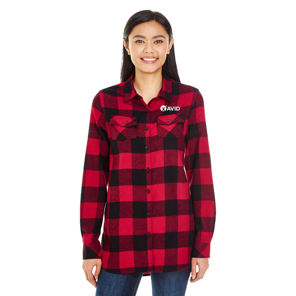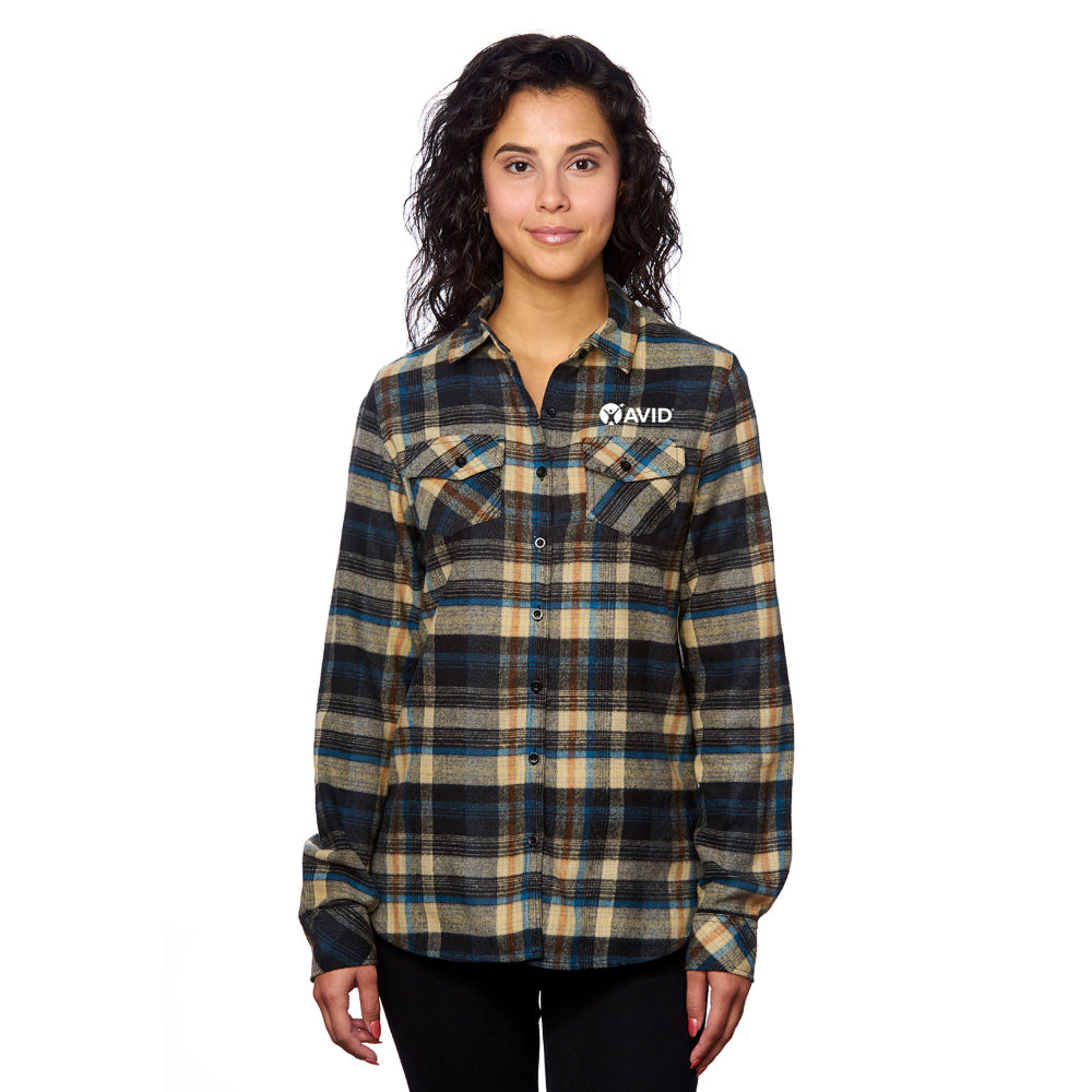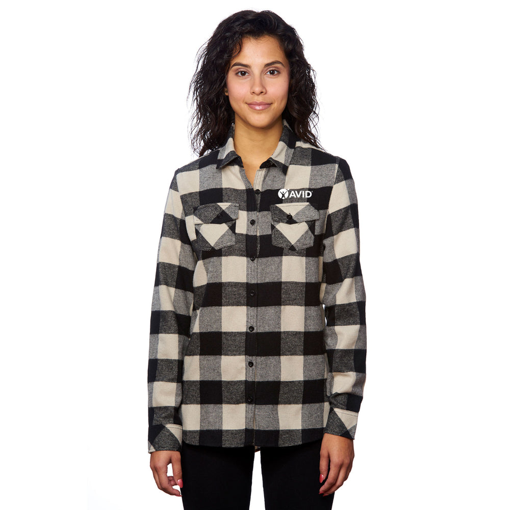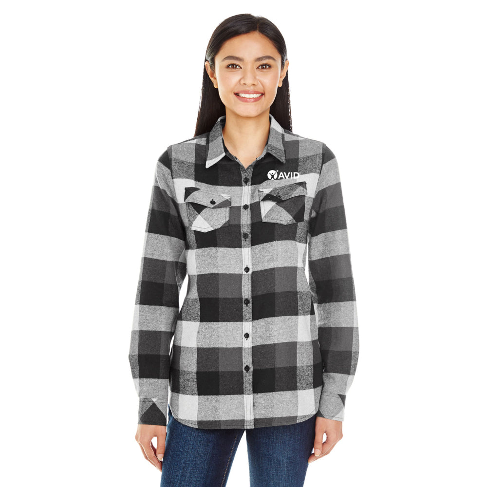 Burnside Ladies' Plaid Boyfriend Flannel Shirt - Black / Small is backordered and will ship as soon as it is back in stock.
